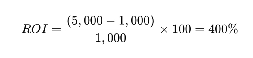 つまり、「1,000円投資して、+4,000円の利益アップ」なら、ROI=+400%。